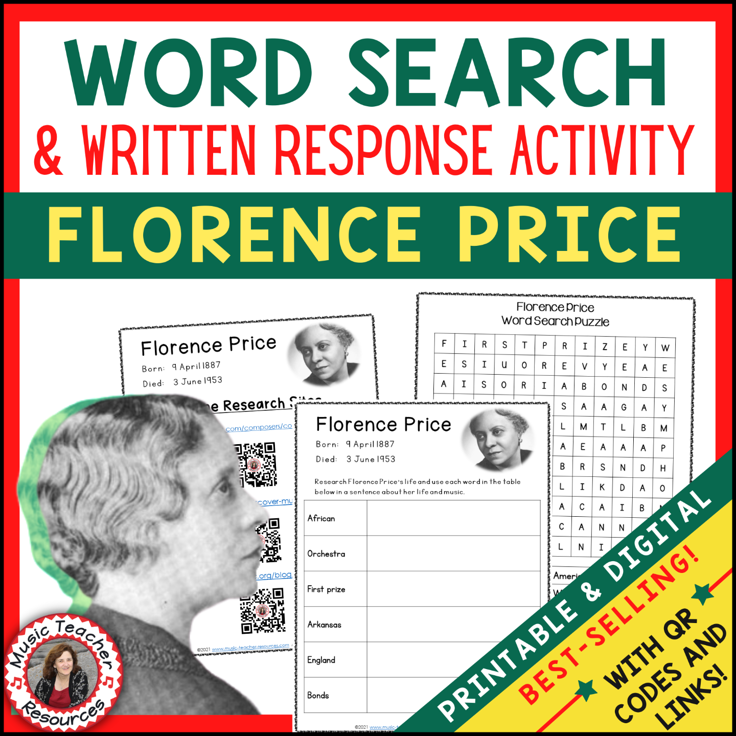 Florence Price Word Search and Research Activity