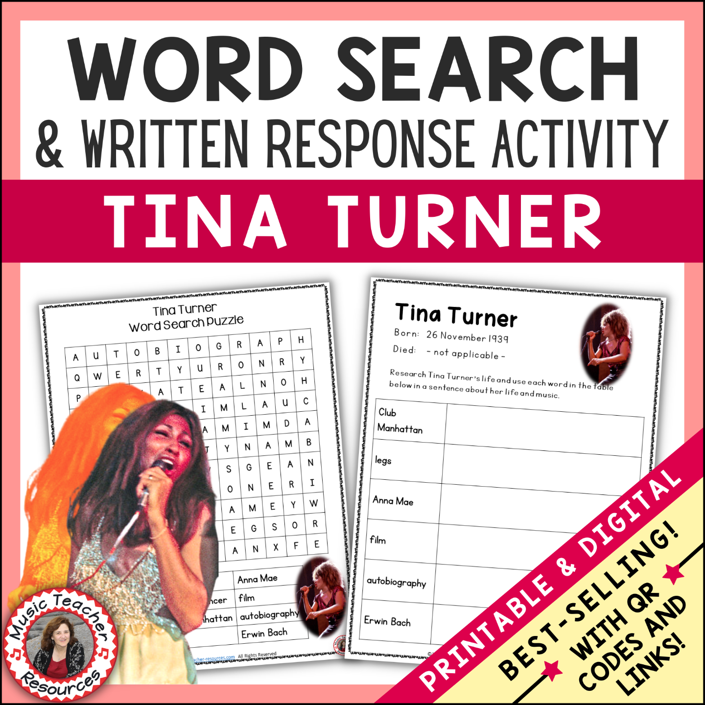 Tina Turner Word Search and Research Activity