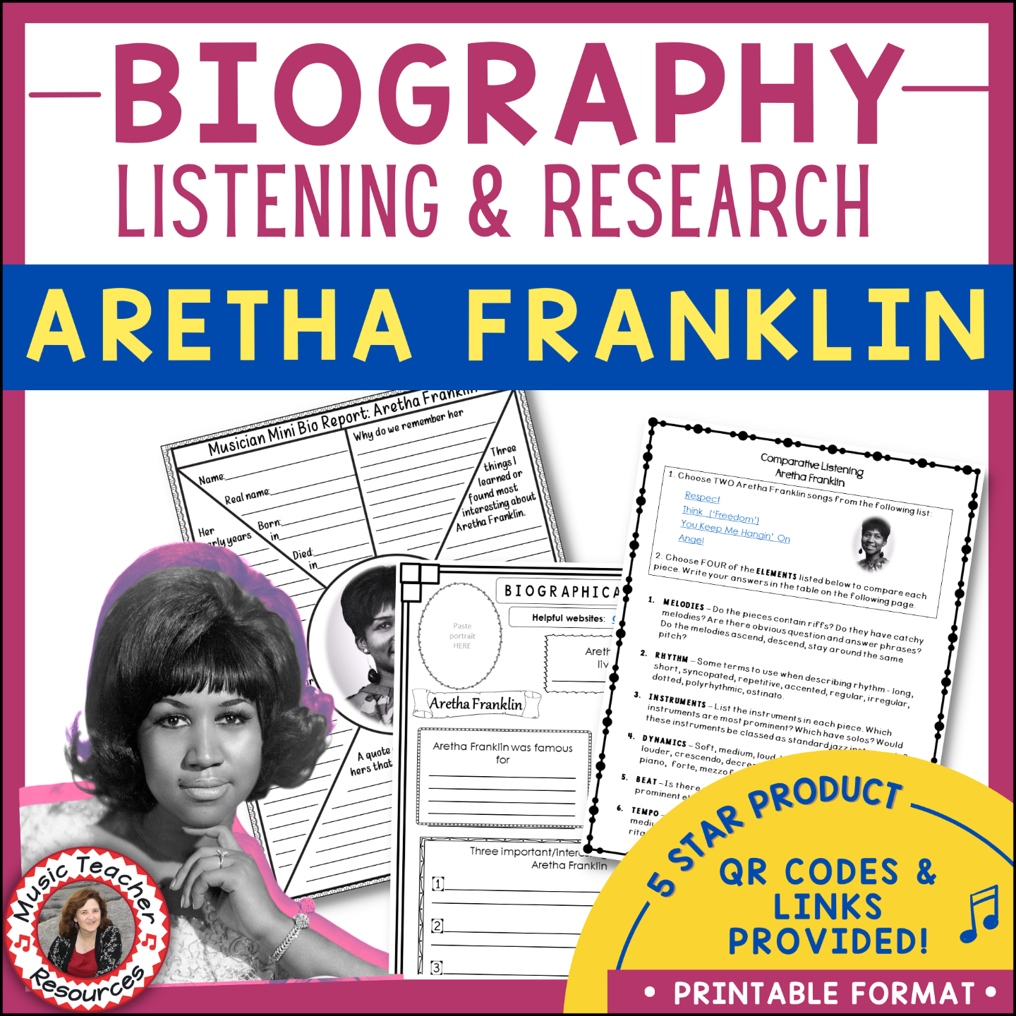 SEE THEM ALL!Perfect for Black History Month, these materials help music teachers and students explore the lives, music, and cultural impact of groundbreaking Black artists. From biography research to listening lessons, our resources provide meaningful, engaging ways to celebrate the contributions of Black musicians and their lasting influence on music history in the classroom.