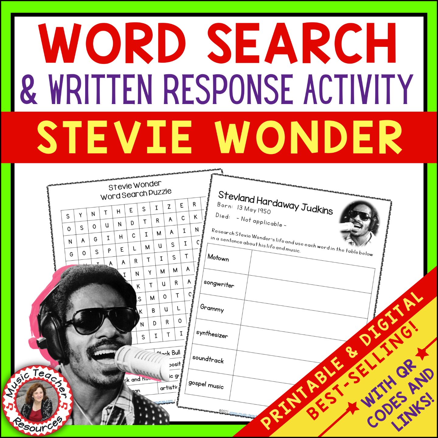 Stevie Wonder Word Search and Research Activity