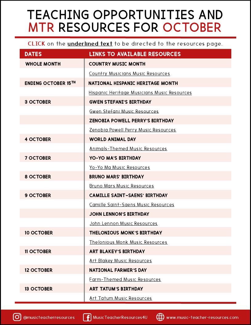 Enter your name and email address and click the button below to receive your FREE PDF file: OCTOBER Teaching Opportunities and Resources.
