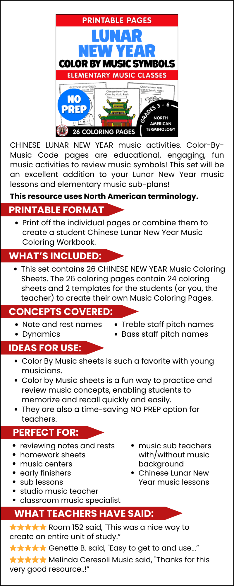 Chinese Lunar New Year Color by Music Symbols