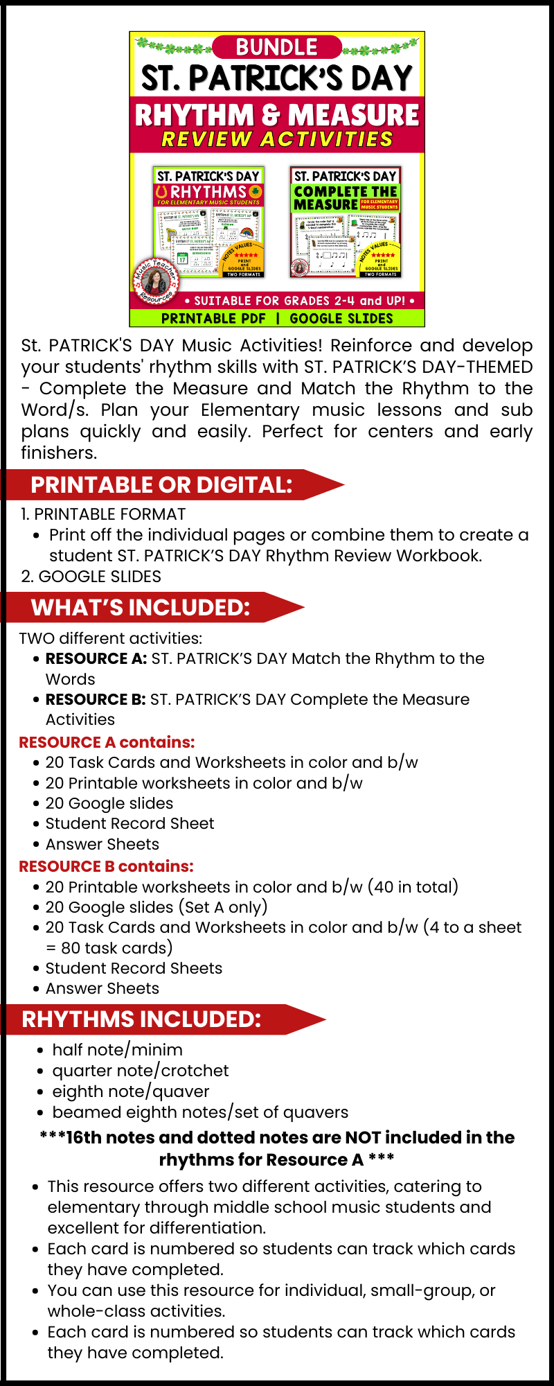 St. Patrick's Day Rhythm and Measure Review Activities Bundle